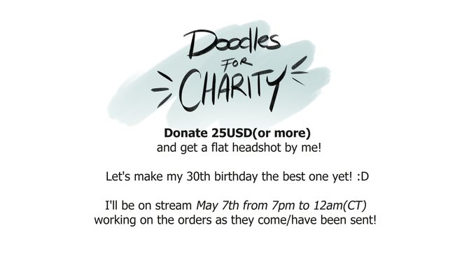 Alrighty! 🎉I'll start taking in Charity Headshot Commissions! These will be streamed this THURSDAY from 7pm until my bday! 12am Central Time.