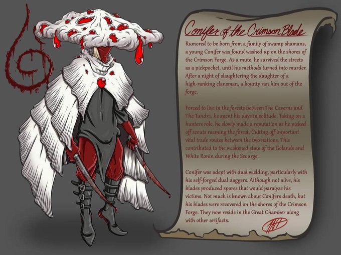 Conifer of The Crimson Blade (Based upon the Bleeding Tooth Fungus) Lore Page