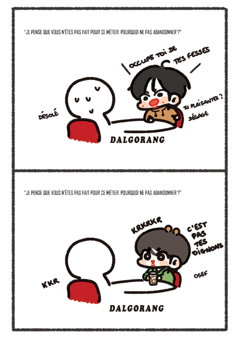@DALGORANG [FRA] Je pense que vous n'êtes pas fait pour ce métier. Pourquoi ne pas abandonner ?
