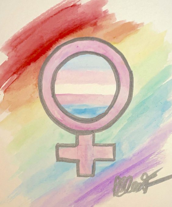 Happy #InternationalWomensDay !! Have a quick little watercolor doodle to celebrate! Please remember to include our wonderful trans friends, because trans women are women, and to check people’s pronouns when you make lists and things for today!