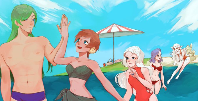 A birthday gift for @DjangoDunesVT featuring our whole little harem having a lovely day at the beach! I don't know what everyone included has for art tags, or if they even all HAVE art tags yet, but this was another great piece from @WIIOMG