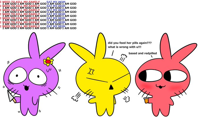@_MilkyWayWishes as demons, they embody the negative aspects of humanity, so they're drawn to evil things, at the same time, they're just 3 goofballs with no real affiliation with nazis, one's a manlet with mommy issues, another is a bisexual methead, and the other is a dummy who likes to eat