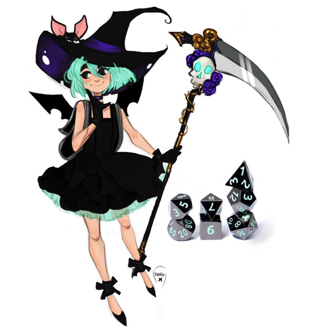 ofelia's new dress ,now i just need to find a bag of holding with bat wings! #dnd #characterdesign #dice #tindorei