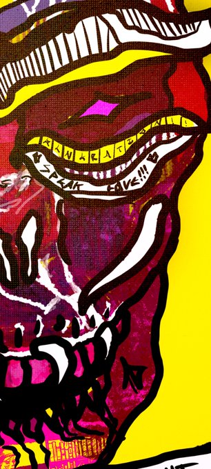 'Dust Bowl Devil' Up close and personal, our hero faces off against his cities worst nightmare. Will he prevail? Or is he simply another soul lost in the seemingly endless ocean of sand? Acrylic on canvas (: