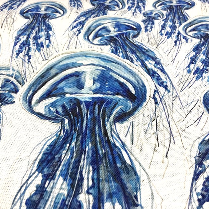 I just love how this jellyfish print onto linen has captured all the details of my original watercolour painting. It’s proving to be a really popular design, more details on my website https://t.co/NgeN0WqMIC