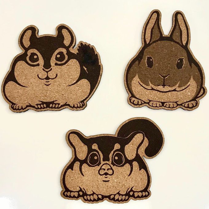 【雑貨】新図柄「小さな友達 コルクコースター(全身・シマリス、ネザーランドドワーフ、フクロモモンガ/改● 顔・フクロモモンガ、全身・ジャンガリアンハムスター、フェレット)」