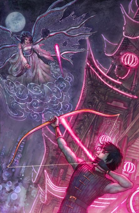 I drew the Chinese moon goddess, Chang'e, for @DarkHorseComics a while ago and thought I'd dig her back out for today! (3/3)
