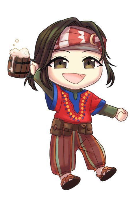 由良辺みこと @mikotoko_ton さんに、イラストを描いていただきました! モニカの弟であり、狩人冒険者にして #ファンタジーキャンプ #ツキノワキャンプ の固定キャラの「ベルンハルト・リュンクス」通称ベル君だよ! 姉弟揃って「お酒好き」な樽ビールがセットで感激だぜ!!