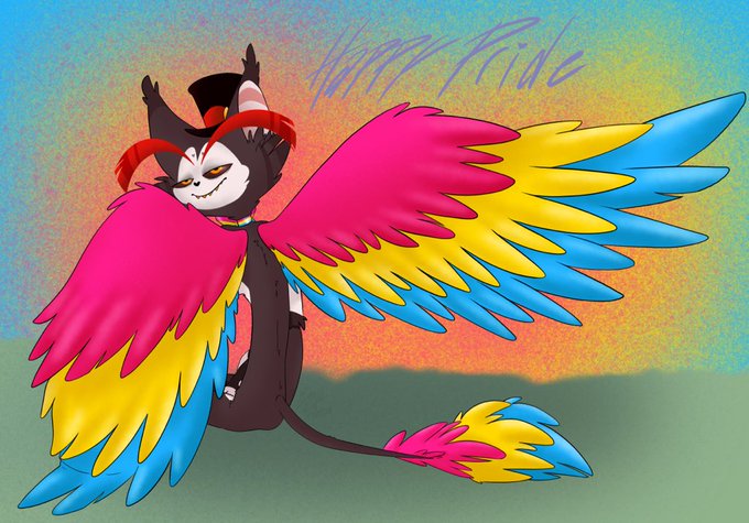 Husk showing off some Pansexual feathers UwU 💖💛💙