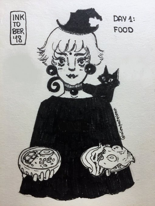 Aquí os dejo el #InktoberDay1 El tema de hoy era comida 🍳🥓🍜 Soy una caca entintando y creí que la comida quedaríamás bonita con color así que he hecho versión digital. Las dos técnicas son igualmente válidas así que calma a los que se estresan por ello 🧙🏻♀️ #inktober2018