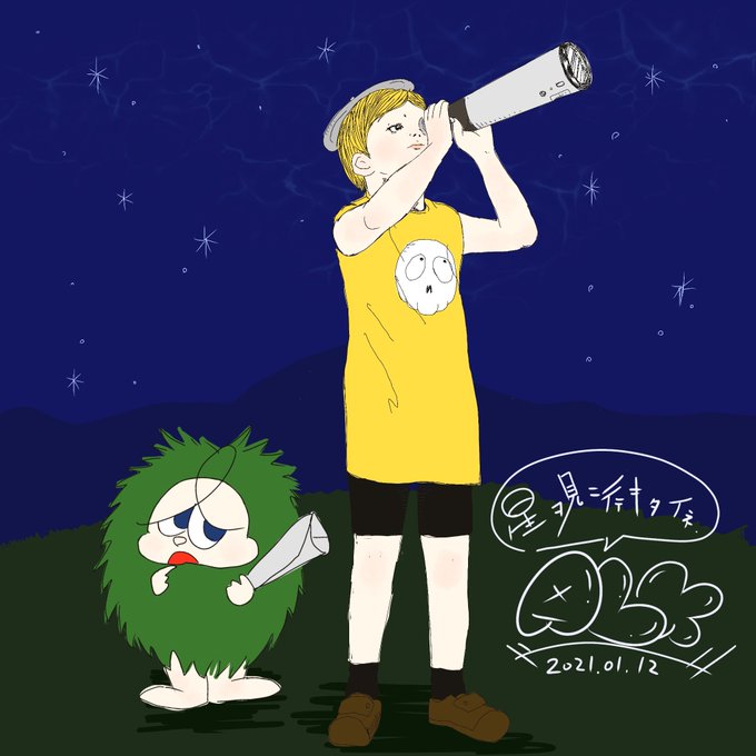 星を見に行きたい。一眼担いで撮影に行きたい。 #イラスト #illust