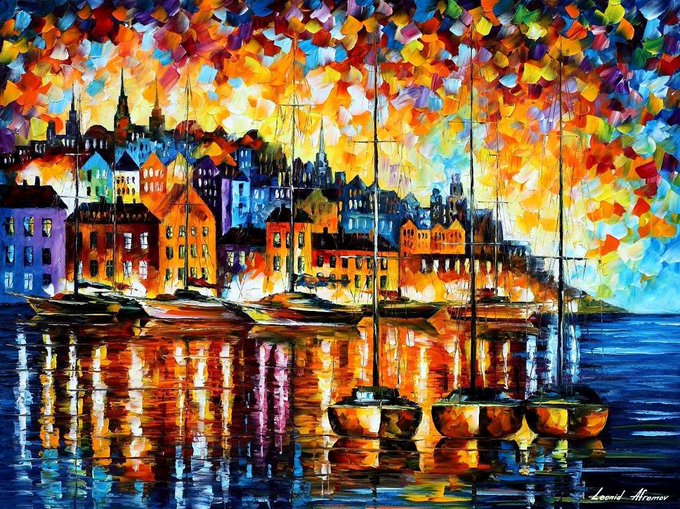 CHARMING HARBOR OF CORSICA - PALETTE KNIFE Oil Painting On Canvas By Leonid Afremov https://t.co/JMcLCo9mrw