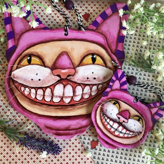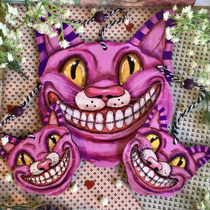Happy #Caturday all. This Cheshire Cat hanging decoration has been taken from one of my original paintings. Comes in an organza gift bag ready to gift #cheshirecat #aliceinwonderland #cats #catsoftwitter https://t.co/TvU6OoJsdU