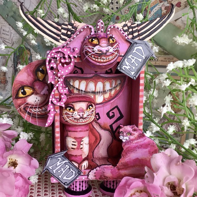 A couple of my hand painted Alice dioramas featuring a certain blue caterpillar and pink cat. Beautiful collector's gifts. Free UK P&P. Worldwide shipping available #ukgiftam #ukgifthour #dioramas #bizbubble #aliceinwonderland #absolem #cheshirecat https://t.co/IStpmMhMbI