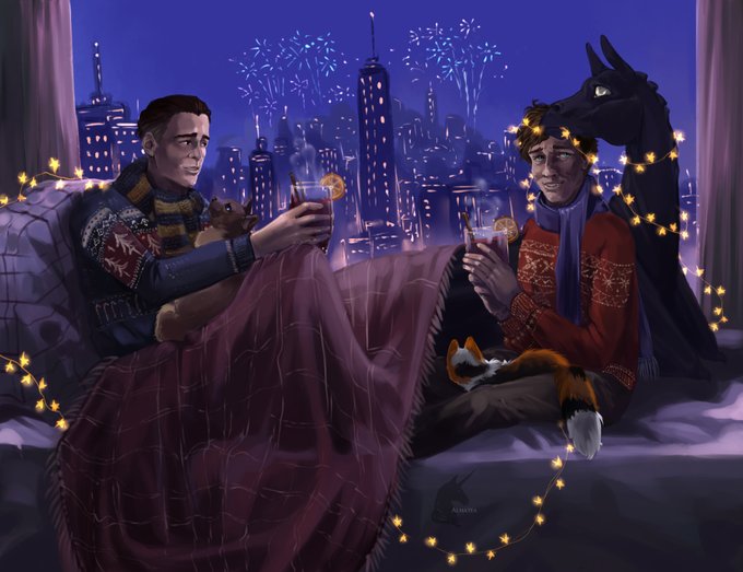 Another holiday drawing. Finally I finished this series, where there were 3 different sketches (dragon, dog and horse)