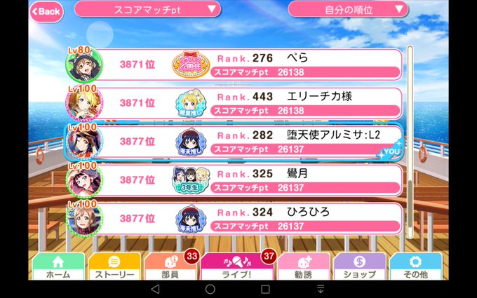 スコアランキングは、運が向きませんでした_(-ω-`_)⌒)_