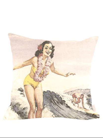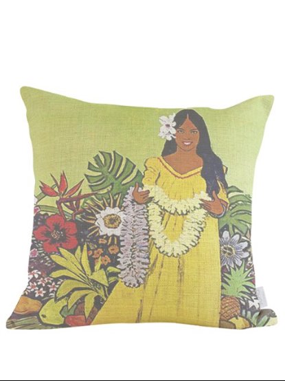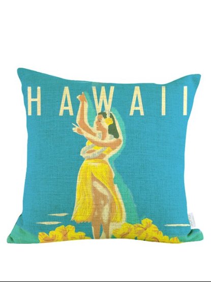 【クッションカバー】古き良きハワイの情景を描いたクッションカバー。サイズは46cm x 46cmです。