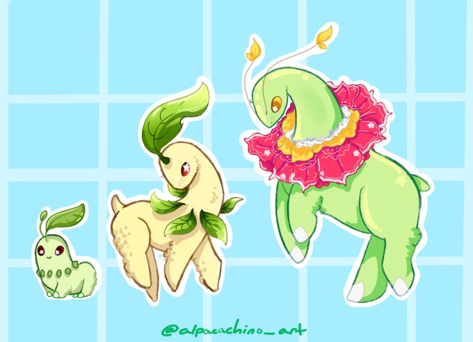 Finally finished Chikorita's evolution line! Gud plant bois 🪴 #art #pokemon #pokemonart #meganium #chikorita