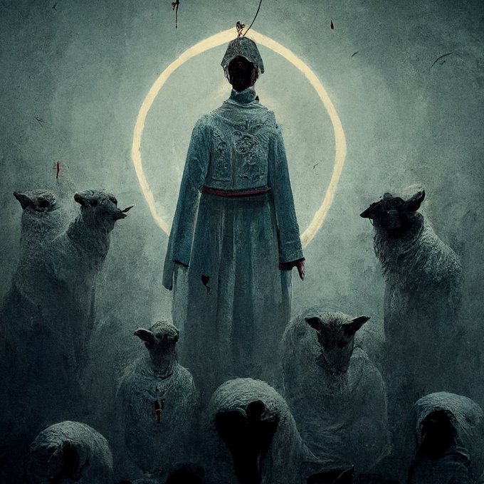 Thanks to the power of the #MidjourneyAI Image Generator... I present to you @MassiveMonsters "Cult of the Lamb" 🐑😁