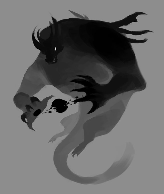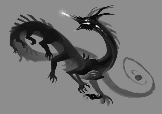 Got my computer fixed! Here's an old mist dragon drawing I used to experiment with textures a while back