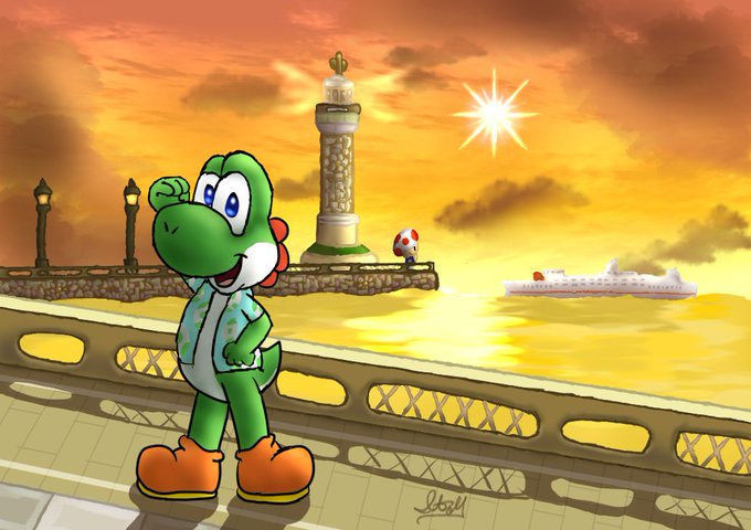 Nothing like catching a good sunset at Daisy Circuit! Even Yoshi's all dressed for vacationing. Does his outfit look familiar? 👀