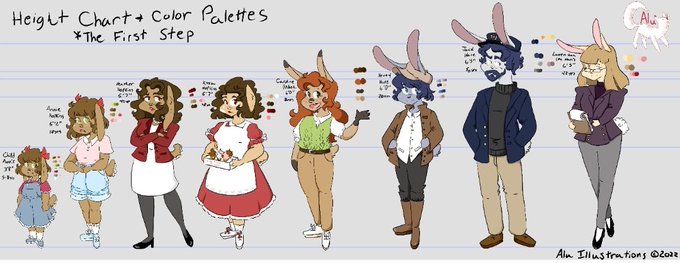 Here are some drawings/ height chart. Annie and Henry are the main characters.