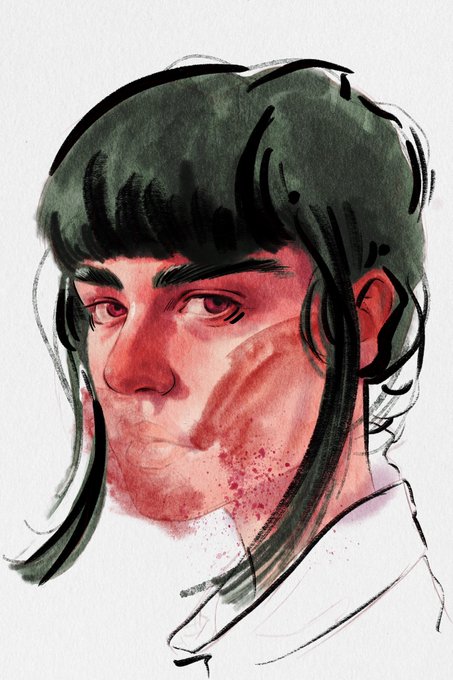 Gouache, color pencil, ink, and a sticker