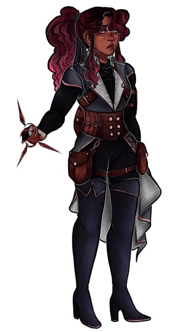 This was the development of my oc Rue for the last campaign my friends and I ran, Brass-Tacks! She's an NPC now for our sequel group, and I just think it's so fun to see the visual differences of both art and oc 🥰