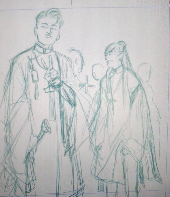#Isaac #SontungMTP 2 male young popular Vietnamese pop singers, i drew they wearing "ao tac" Vietnamese traditional clothes in modern style.