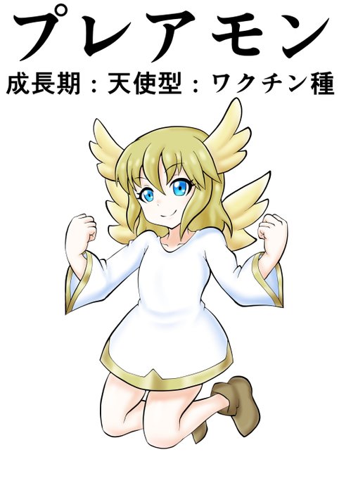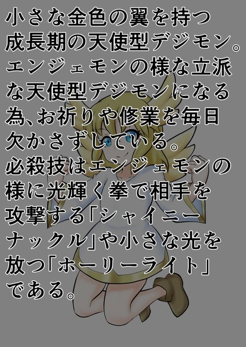 #オリデジ 立派な天使型デジモンになる為にお祈りと修業をしている「プレアモン」です。必殺技はパンチと武闘派です!