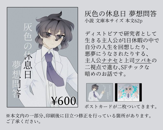 8月3日から5日まで開催されます #月燈マルシェ で新刊頒布予定です!SFチックな短めのお話になります 2枚ポストカードがついてきます