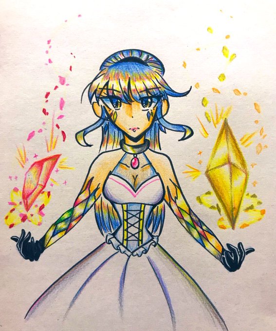 @_Schlange_ いつも大体12色鉛筆+金銀色使ってるー! 色に関してはグラデとか色んな色混ぜる様にやってる+加工も入ってる!