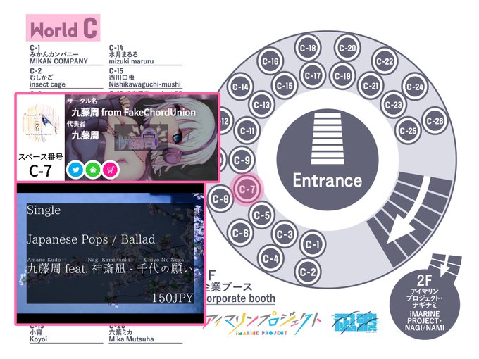 ぼくのブースは【World C C-7】です。よろしゅ。