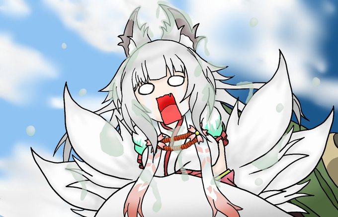 天ッ狐白さん(@Amatu_kohaku)が駄目神姿描いてたので… 以前言ってたカエルに捕食される狐白さんを作成しました #狐白覧会