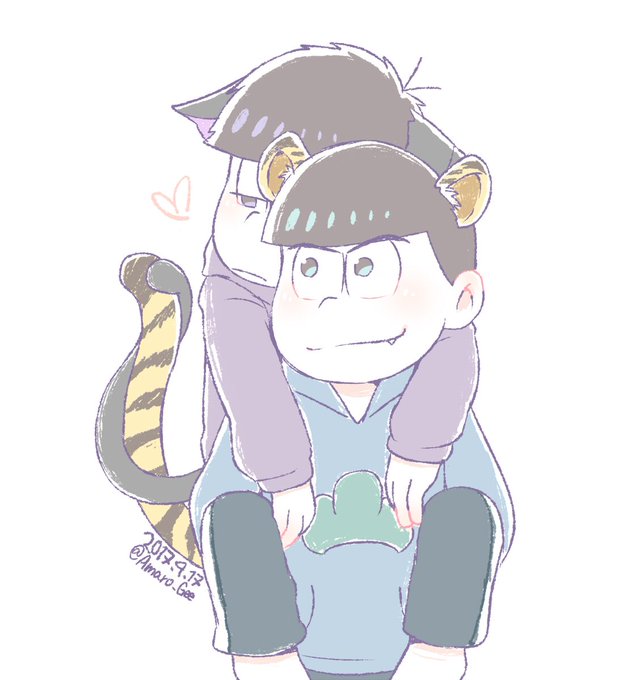 俺たち六つ子だろ? だからお前もお揃いにしてやったよチョロ松〜♪ #速度松 #おそチョロ