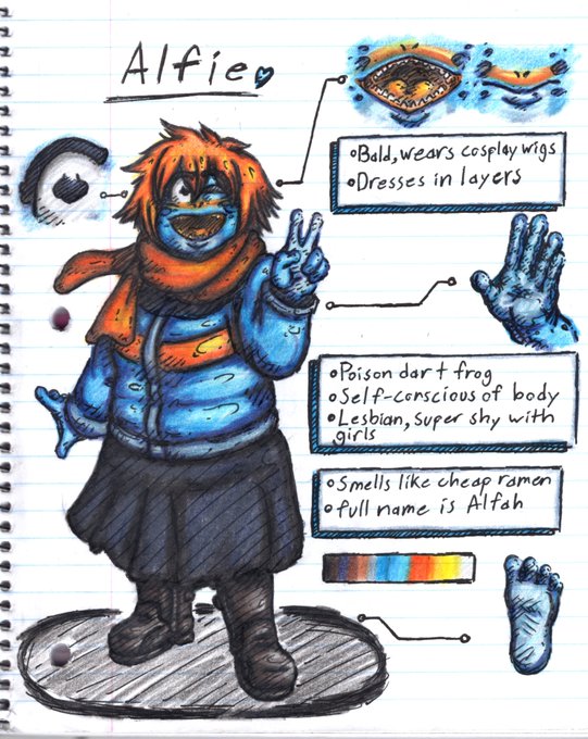 I've been remaking some reference sheets for some of my older oc's--and next up is Alfie! (now with a new name!)