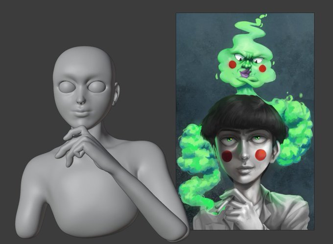 WIP recreating my old fanart from a few years ago in celebration of the announcement! #mobpsycho100 #mobpsycho100season3 #mob #dimple #3d #blender #sculpt #wip