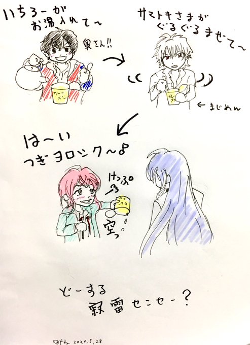カレーメシ 、ヒプマイコラボの3日目。どうしても描きたかった。 らむだの顔がいい感じにムカつく感じになって満足。 センセー頑張って!いや明日はくうこーかささらの可能性もあるけども。