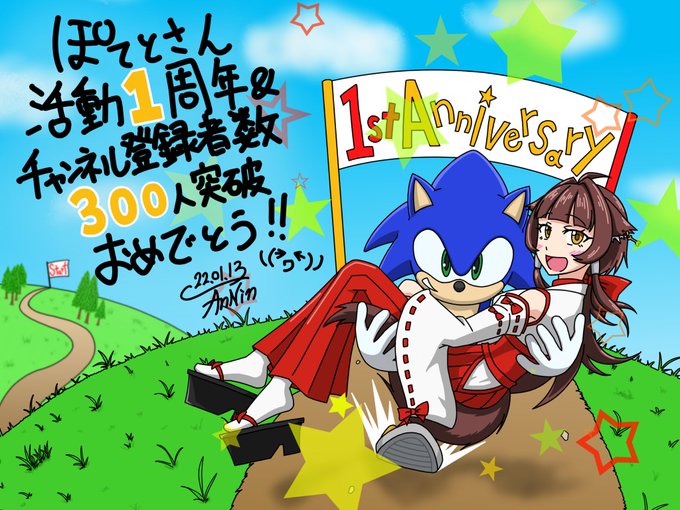 ぽてとさん! 活動1周年おめでとう😆🎊🎉🎂 これからも応援してますよ( *˙0˙*)۶ #犬里ぽてと #ぽてまきあーと