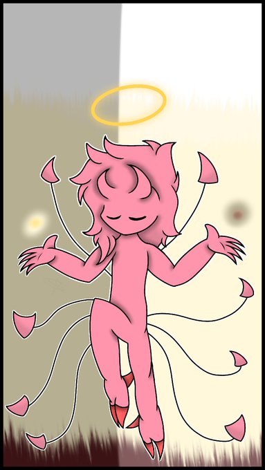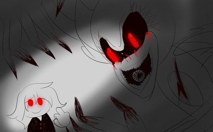 @realcatirl He is a demon who can transform to a human, soo...why not the first and last drawing of him as both?