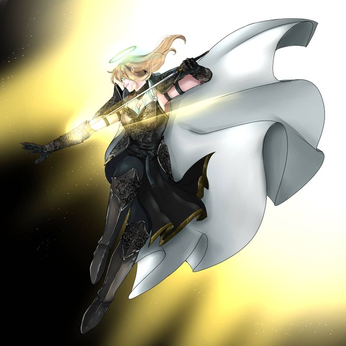 Just finished this illustration of my aasimar-paladín 💕🖤🖤