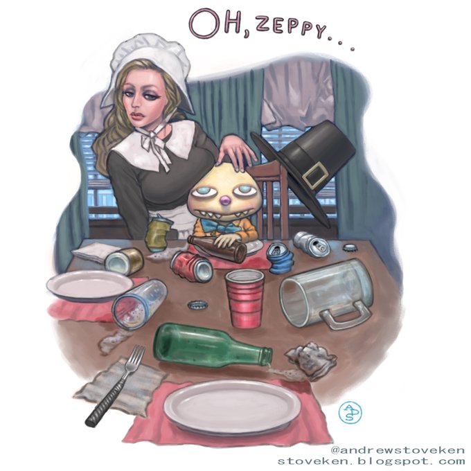 Here's some art done for a Japanese artist named Cherorita. It was a "picture exchange." She drew for me, so I drew for her. Her original art was of a lady holding a plate with cake. So, I drew her and turned it into a Halloween party. #artist #illustration #painting