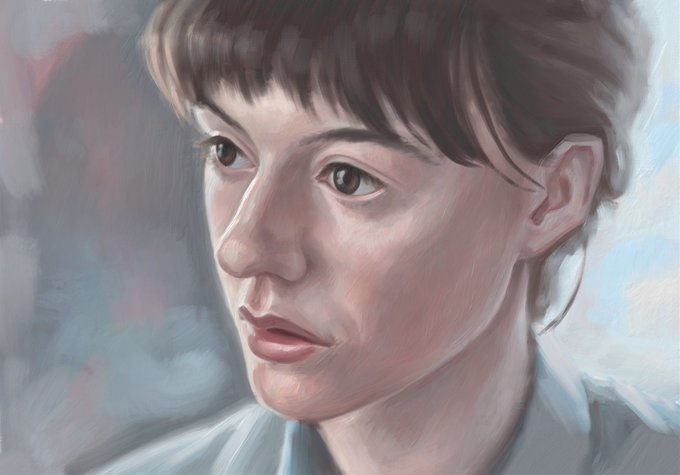 Away from cartoony and back to painting from a photo ref. Wouldn’t it be cool to combine an expressive, cartoony approach, and this detailed digital painting style somehow. The oil brushes in the #adobefresco app are great. I love the textures.