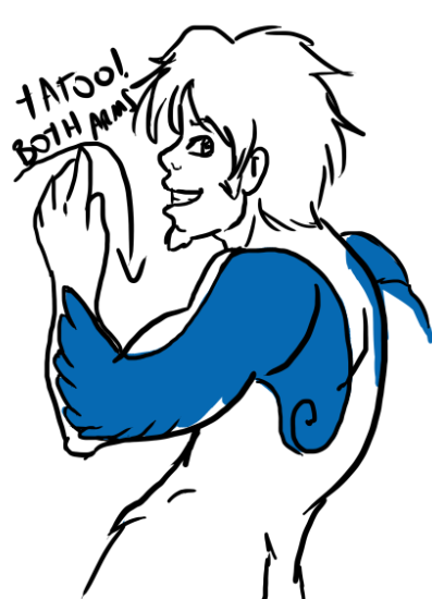 He has a tatoo on both arms, and is pretty fit.