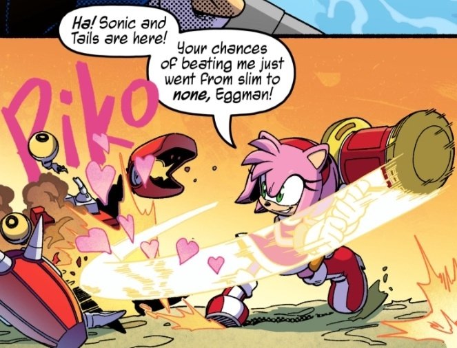 Already at just 4 pages in, this comic handles the dialogue & personalities of everyone so well! Also love the callback to the flying hearts effect to Amy's hammer swing from Sonic Adventure! 💕 https://t.co/y0WWEot1gn