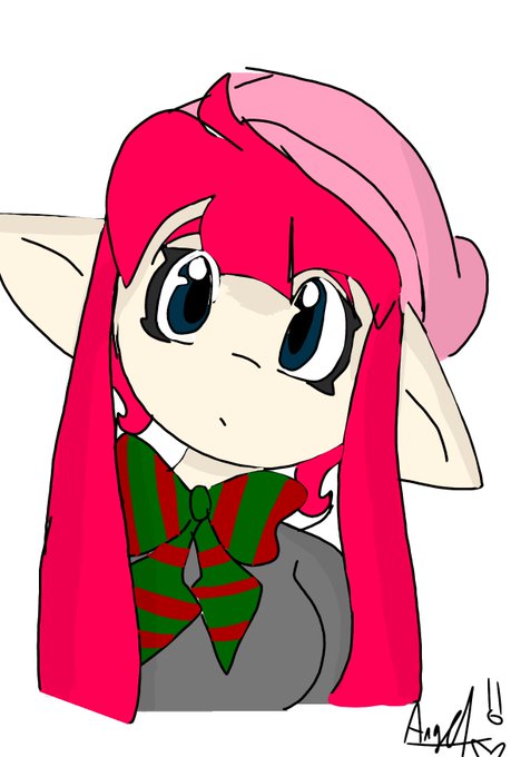 @lookal1keberry This is Tink she's an inktoling she wears a knitted hat a school cardigan and fringed loafers and she carries an inkling girl plush around with her