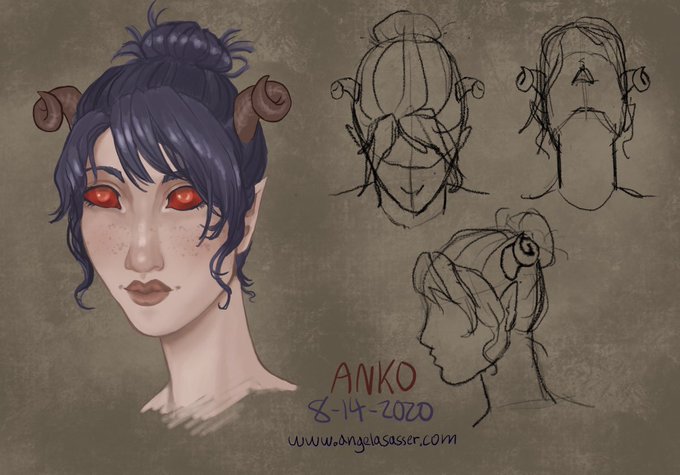 I was gonna work..then I drew a #Tiefling. Let's chock it up as valuable face practice! Another drawing of my warlock, Anko, as the last couple of drawings her horns felt off, so here's an attempt to wrap my brain around their shape. Drawn in @Procreate #DnD #DnDcharacter #DnDart