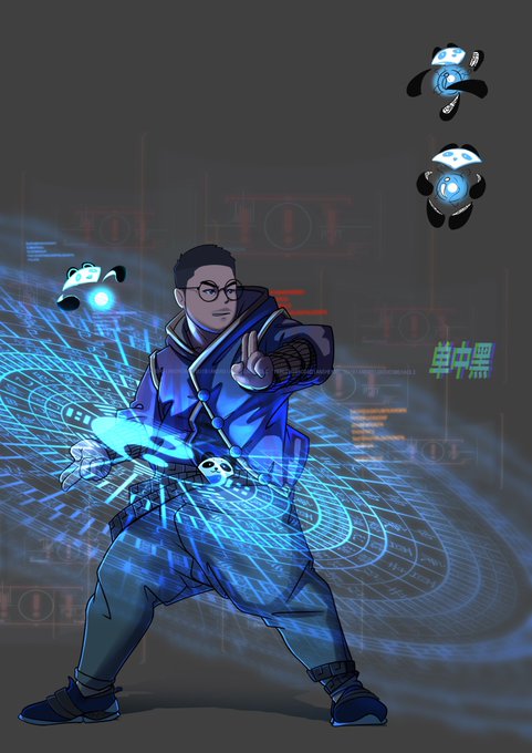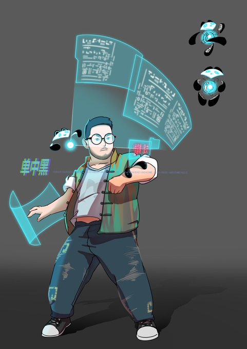 Here are the individual portraits of five pandas by 單中黑. Among five, I love Ding and Cass best. Ding is fierce, and green Cass is just so good.