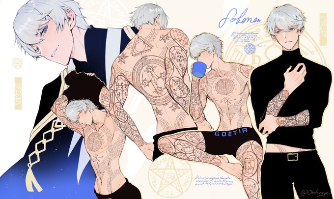 Here is a compilation of fanarts I made of "Obey Me" game these months and I hadn't post them in this account 🥺 Adult Luke design, Solomon Ars Goetia tatoo demon pacts headcanon, Beelzebub outfits and Lion event❤️