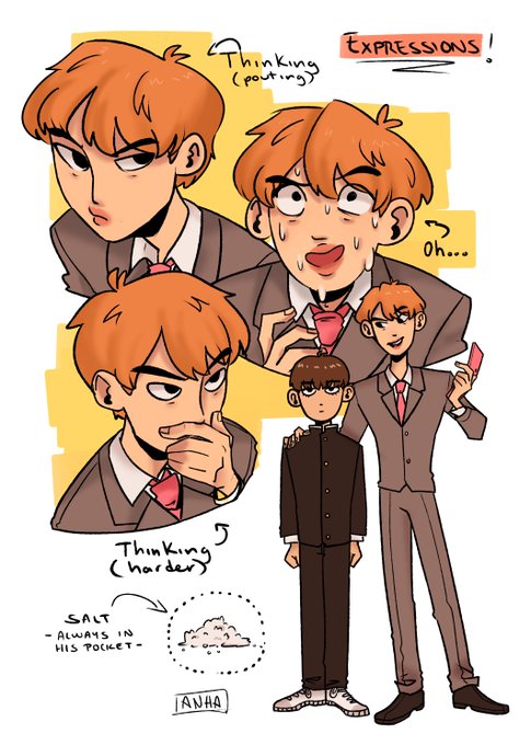 I can finally post this little model sheet i did for @btsauzines ! I chose Seokjin as Reigen because my love for both of them is endless...